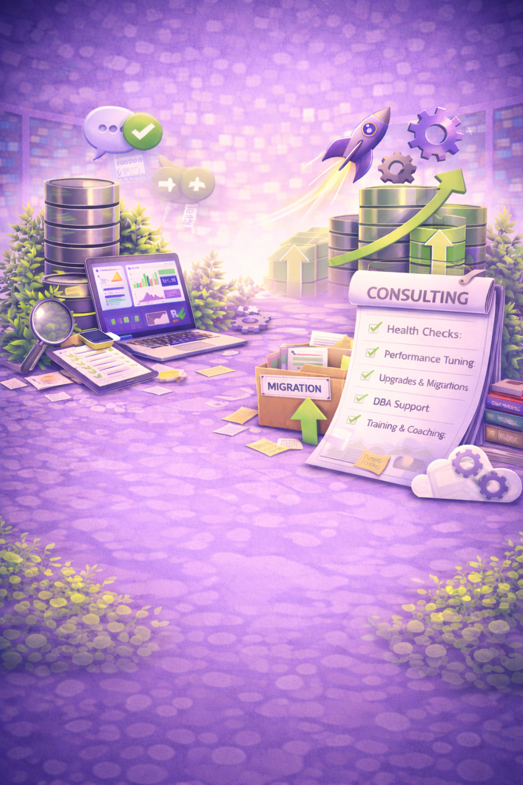 We provide hands-on consulting, proactive remote DBA and managed services, performance tuning, health checks, upgrades and migrations, and practical training and coaching for your team.